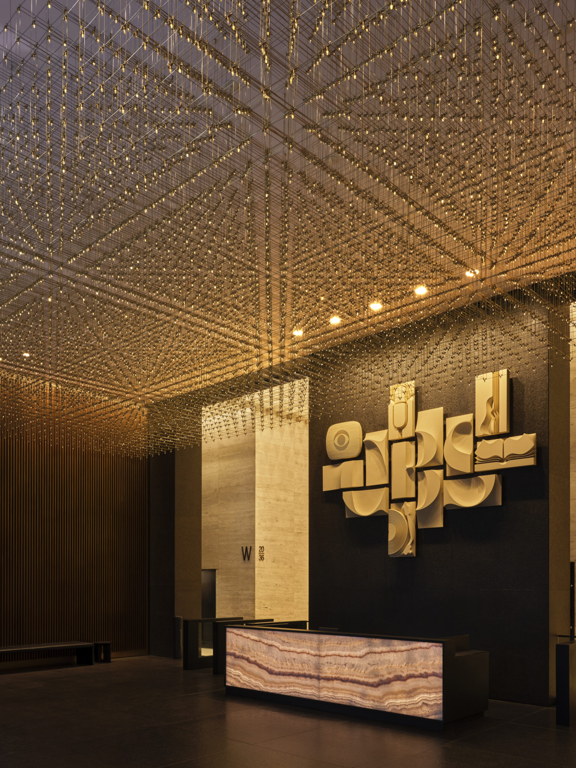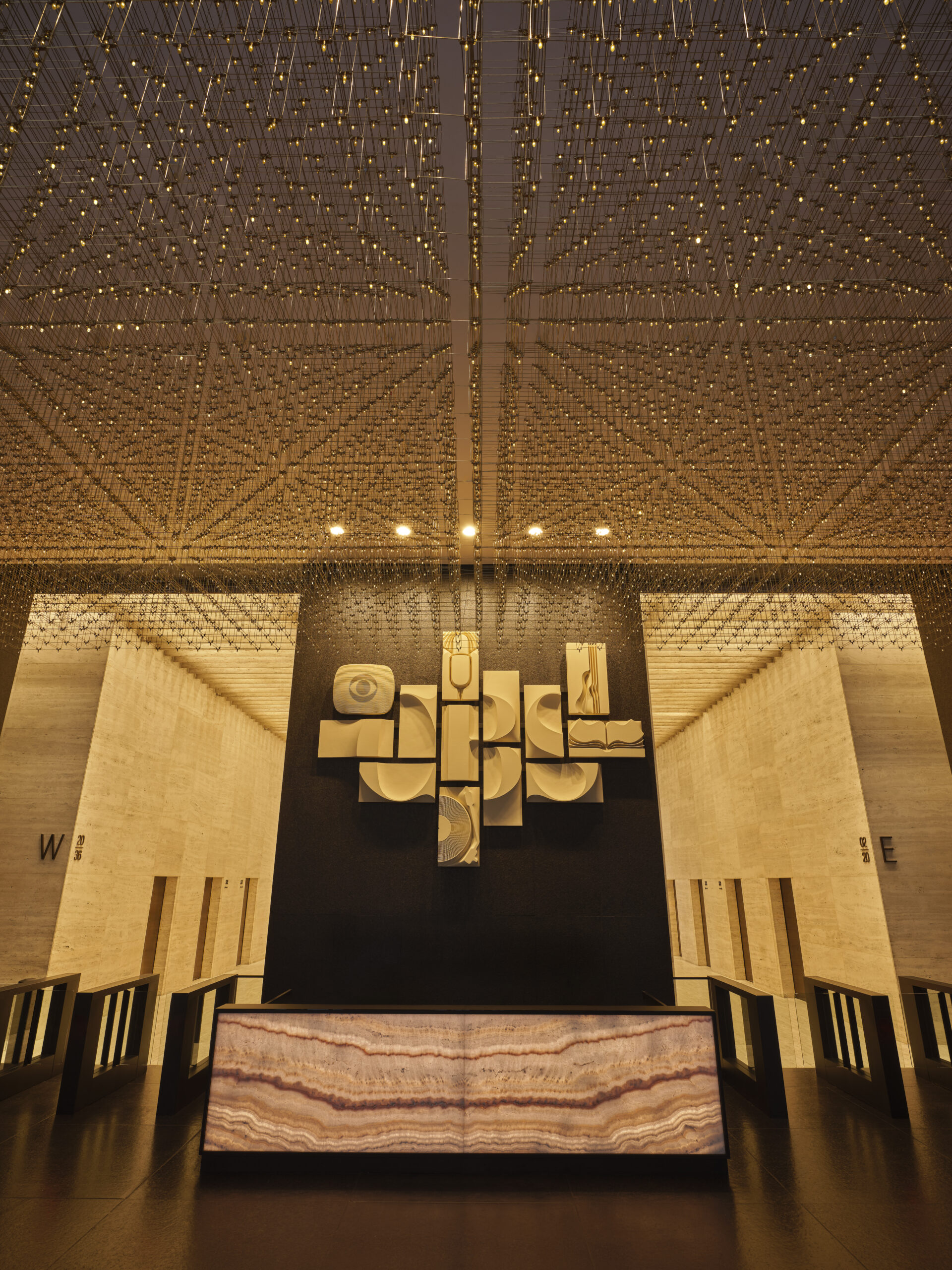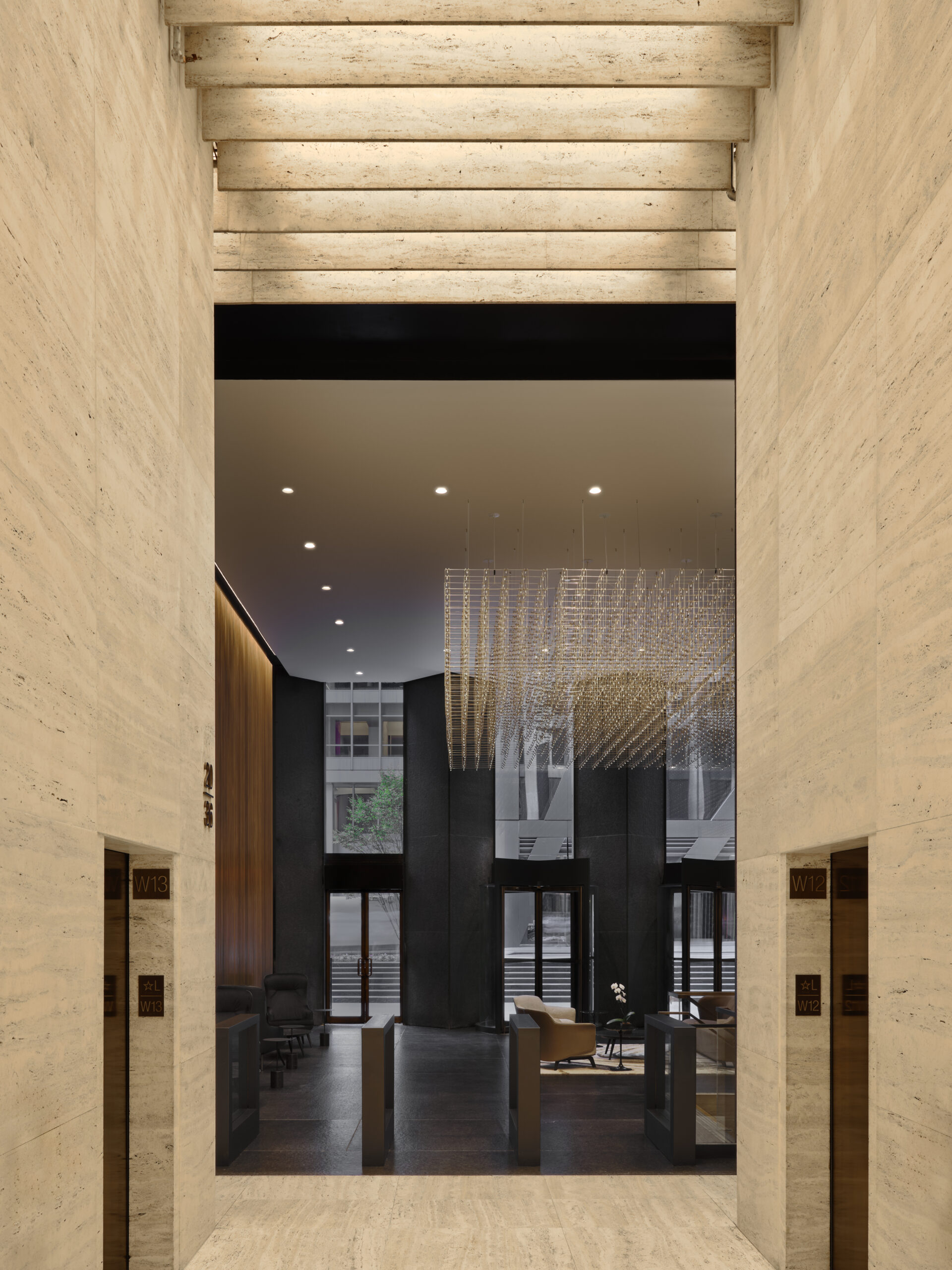 The challenge to Vocon and MdeAS Architects, the design firms charged with renovating the plaza, the ground floor, and a lower level, was to update the building’s common areas to attract tenants operating in a post-Covid, hybrid-work era while retaining the unapologetic midcentury swagger of Saarinen’s iconic structure. Designated a New York City landmark in 1997, the building is protected in terms of its exterior, but not its interiors. Nonetheless, Vocon and MdeAS deferred to Saarinen, both inside and out.