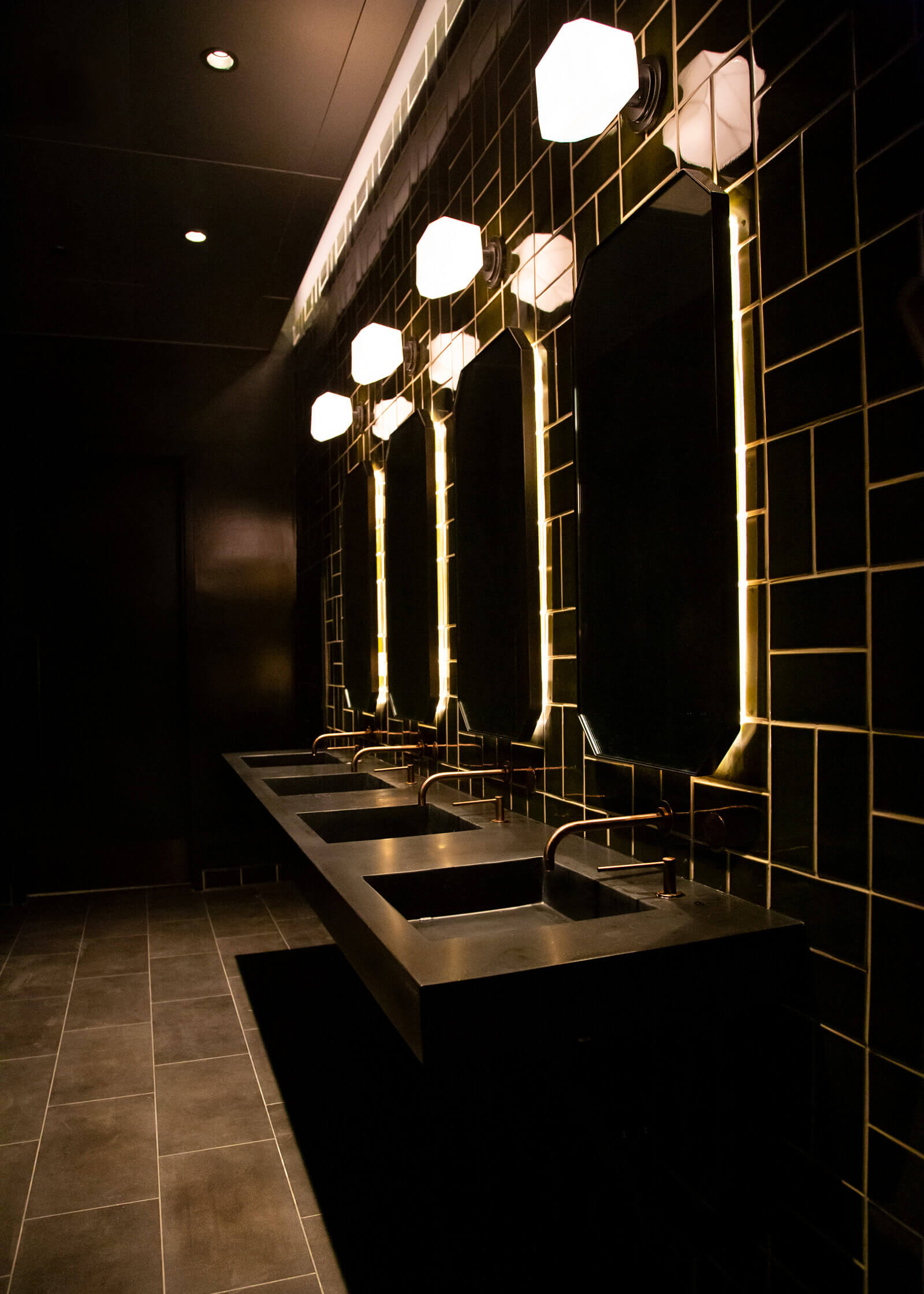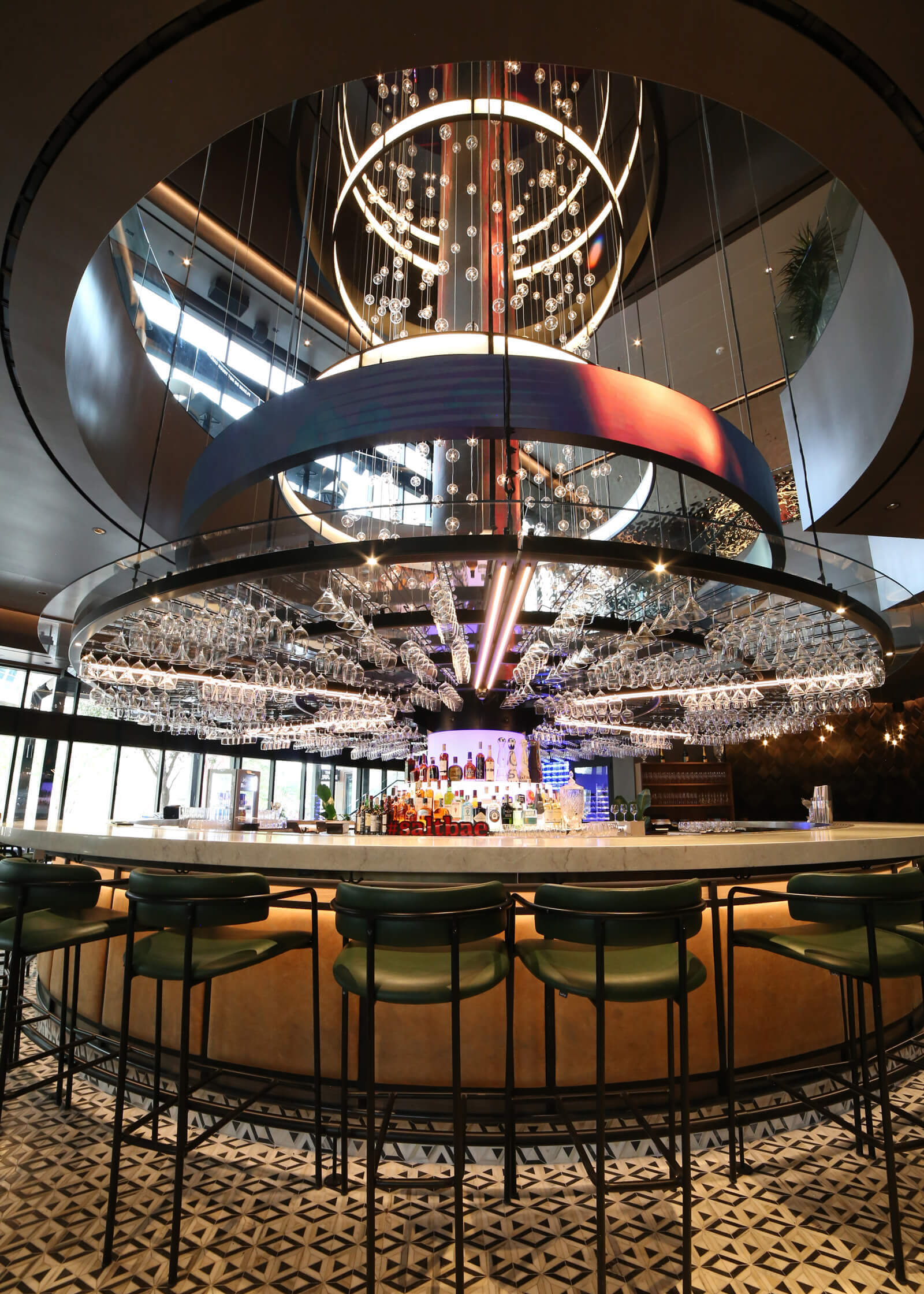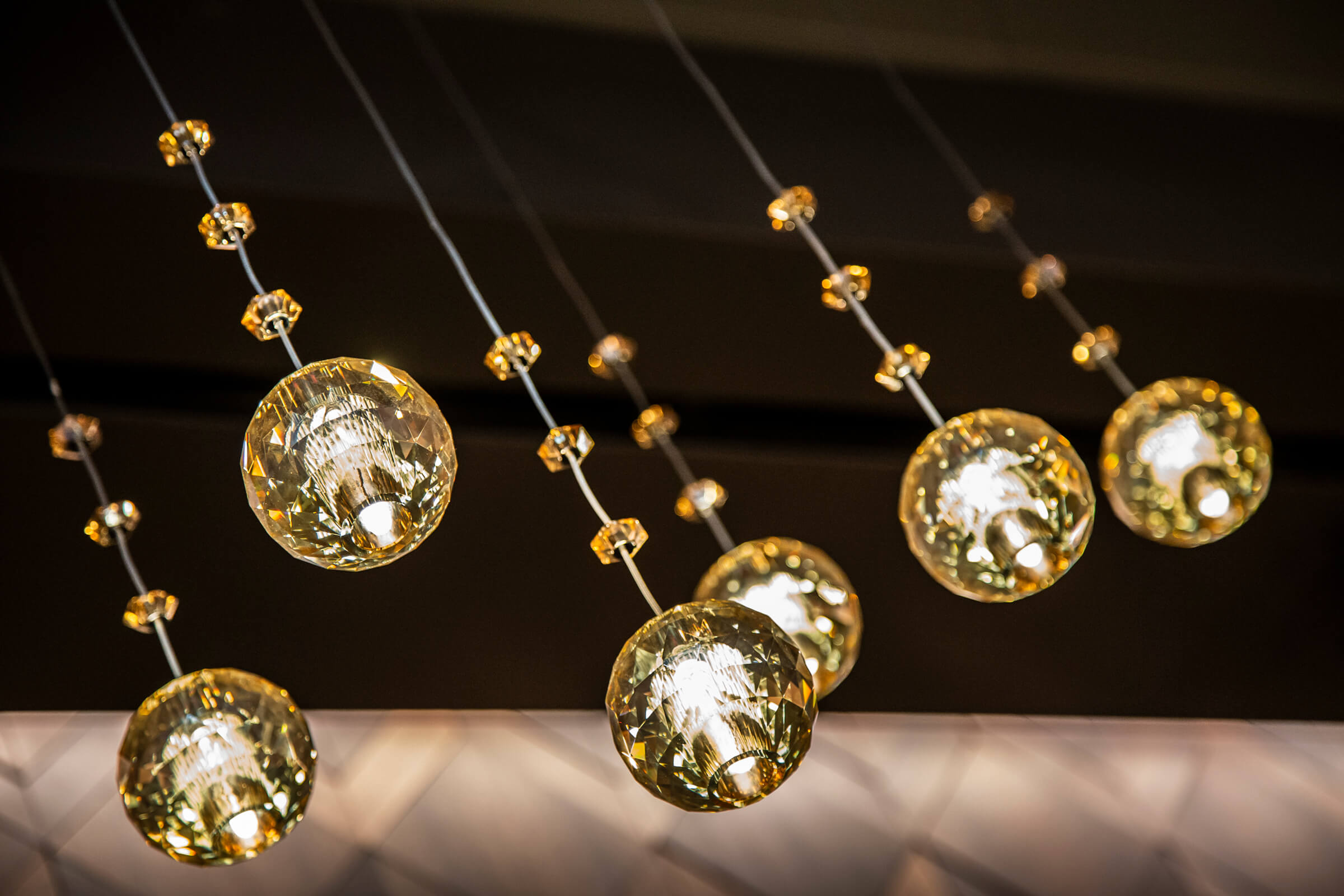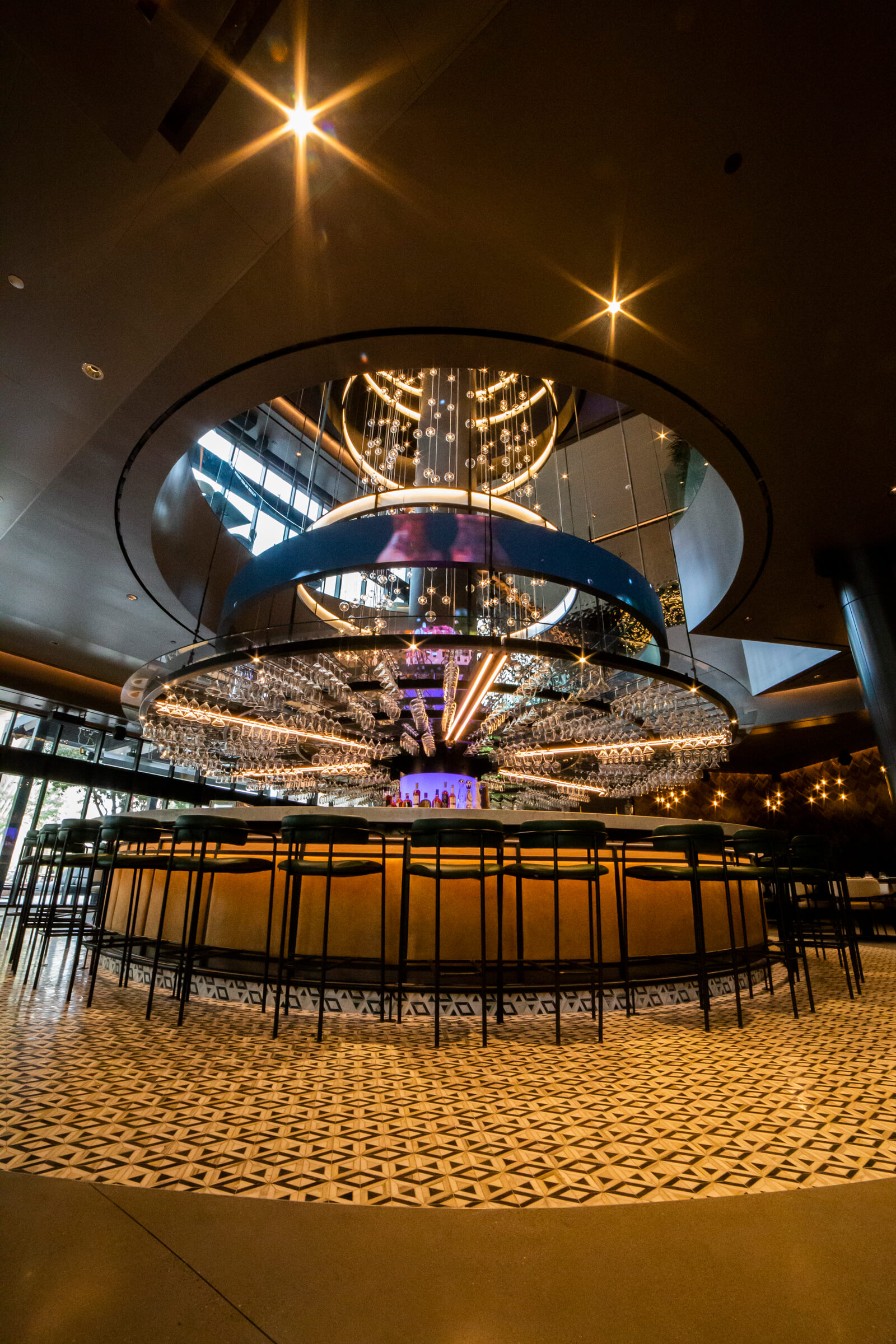 VISO meticulously planned and custom manufactured each light in this collection. The feature installation is the grand centre fixture within the bar area with LED panels. Dealing with a corporate expansion and a tight deadline, not to mention a global pandemic, the VISO team had to work strategically around the clock to ensure smooth teamwork with each team member for a successful installation. This allowed VISO to effectively maintain constant communication and safely monitor visits on-site.