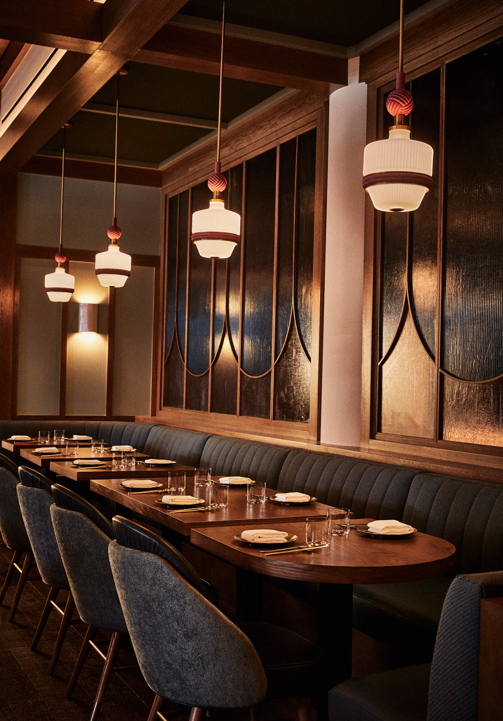 Oiji Mi received a full makeover by AvroKO, featuring intricately detailed lighting from VISO. This custom lighting package supports the creative contemporary Korean dining experience composed uniquely for NYC.