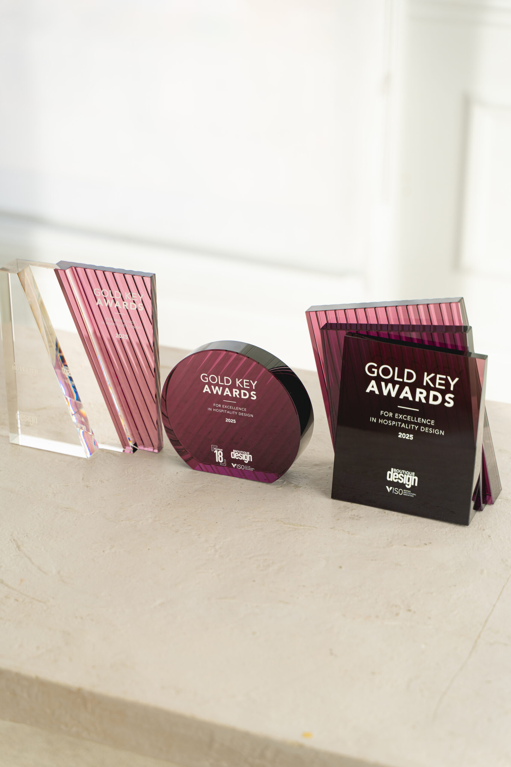 The Gold Key Awards, one of the most respected international recognitions in hospitality design, commissioned VISO to create three distinct trophy designs for its 2025 ceremony. The awards required sculptural integrity, material innovation, and a sophisticated visual identity that reflected the prestige of the event.