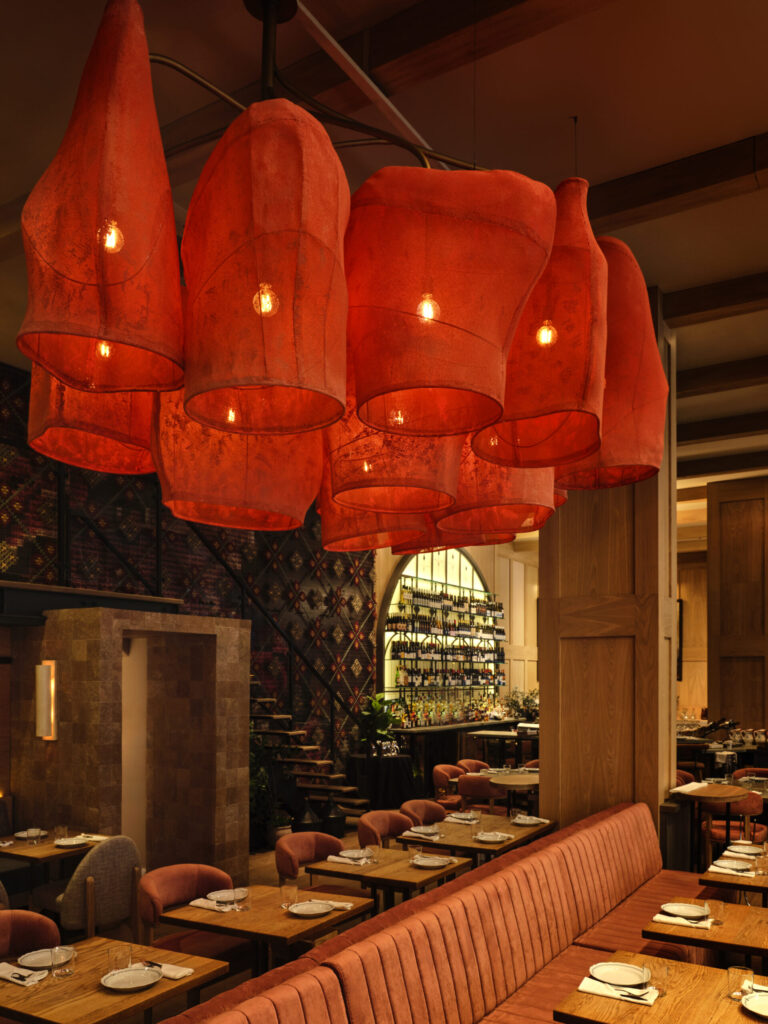 Conceived as a venue that seamlessly transitions from day to night, the Brasserie blends casual elegance with upscale refinement. Its organic forms, expressed through architectural details and bespoke FFE, reference the golden age of Italian design in the 1950s, when “Italian Design” became synonymous with international luxury. The work of Italian artist Salvatore Fiume—renowned for his amorphous sculptures—further inspires the Brasserie’s dramatic chandeliers and sculptural details, which add movement and warmth to the dining room.