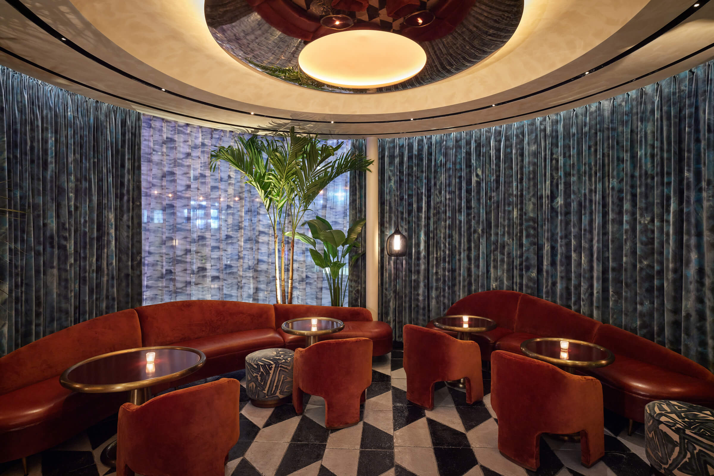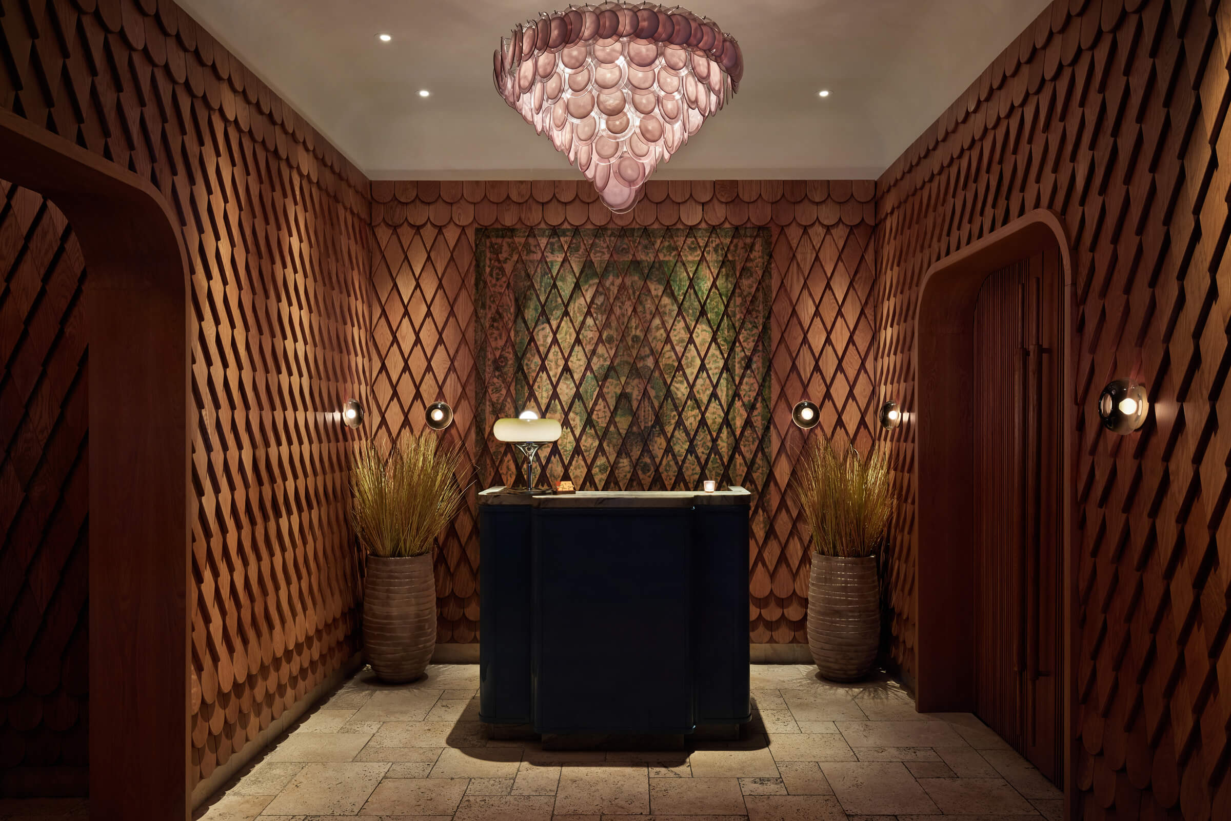 Working closely with AvroKO and GoodShop Manufacturies, VISO incorporated amber resin shades, intricate hand-blown glass, hydrographic wood, and specially crafted large reflective metals to support this unique package.