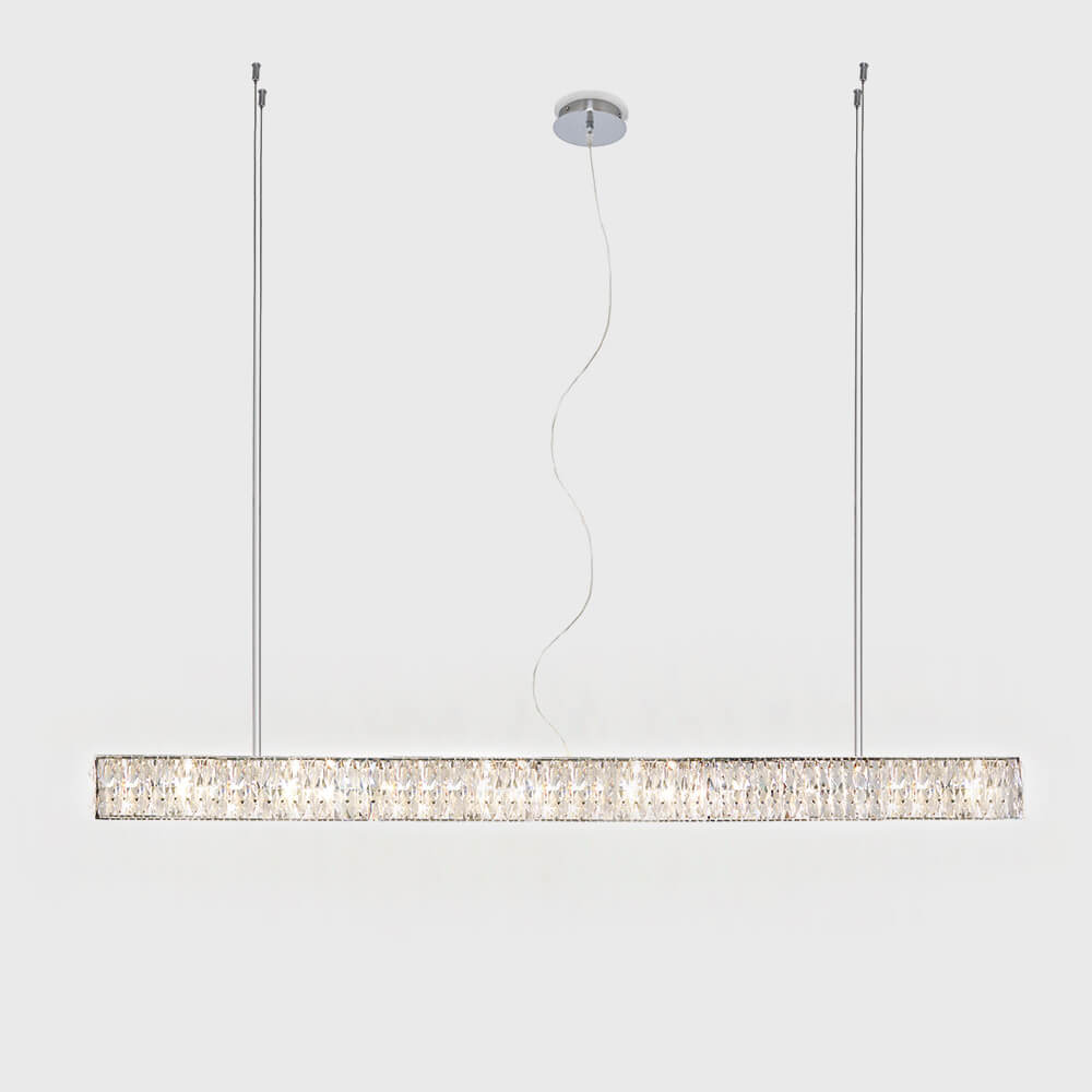 Dazzling four faceted Asfour crystal. Chrome plated frame.