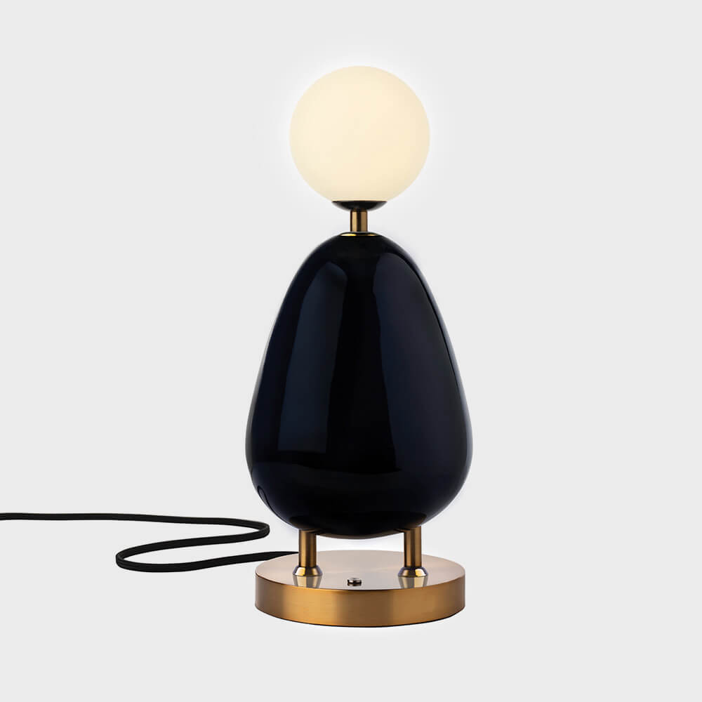 Nancie’s presence is sure to light up any room. Her unique shape is complemented by her high-gloss painted resin body and elegant architectural brass neck and legs.