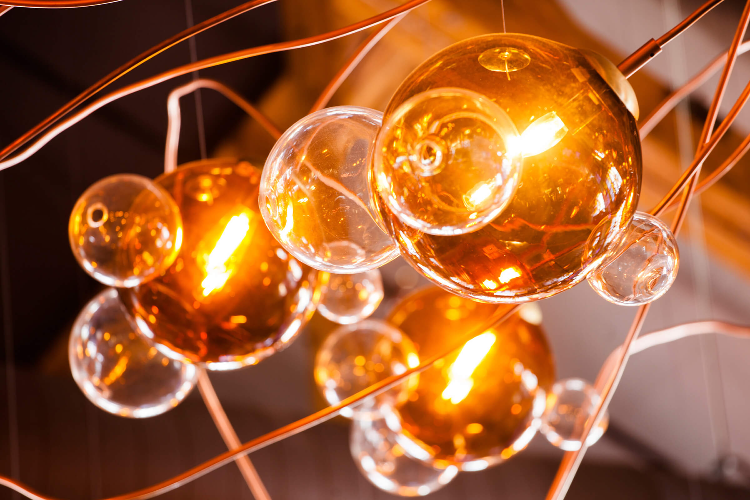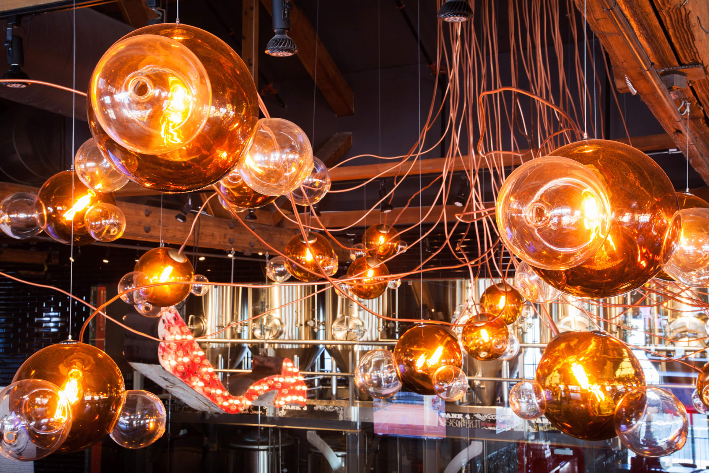 Beer-Inspired Custom Glaass and Copper Chandelier Takes Centre Stage