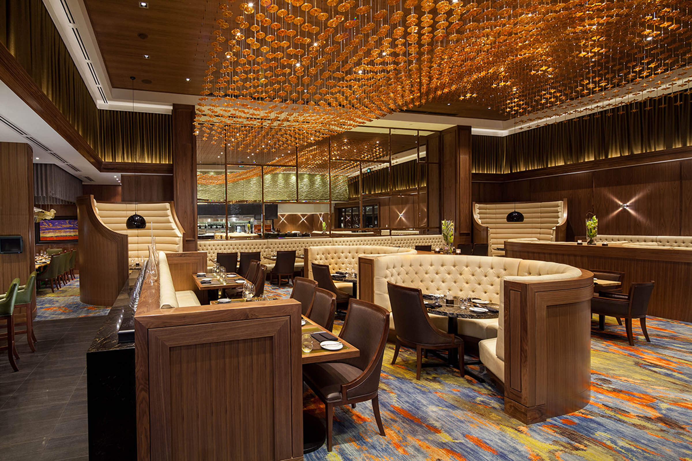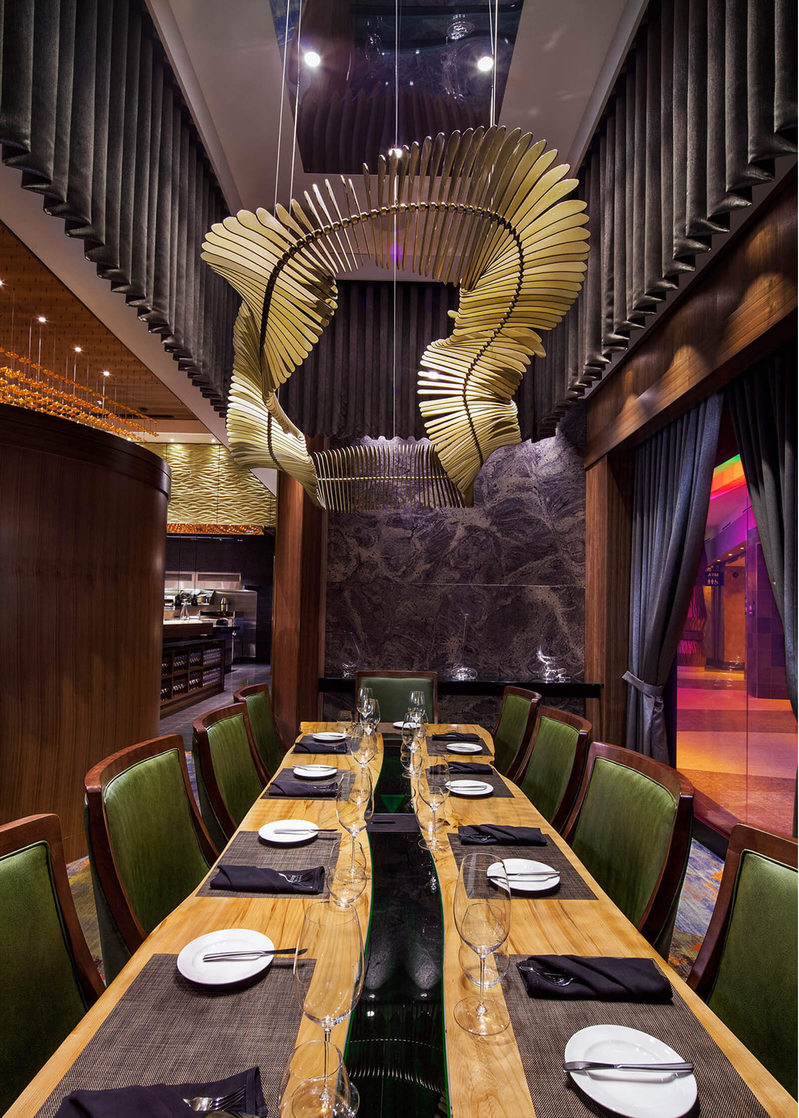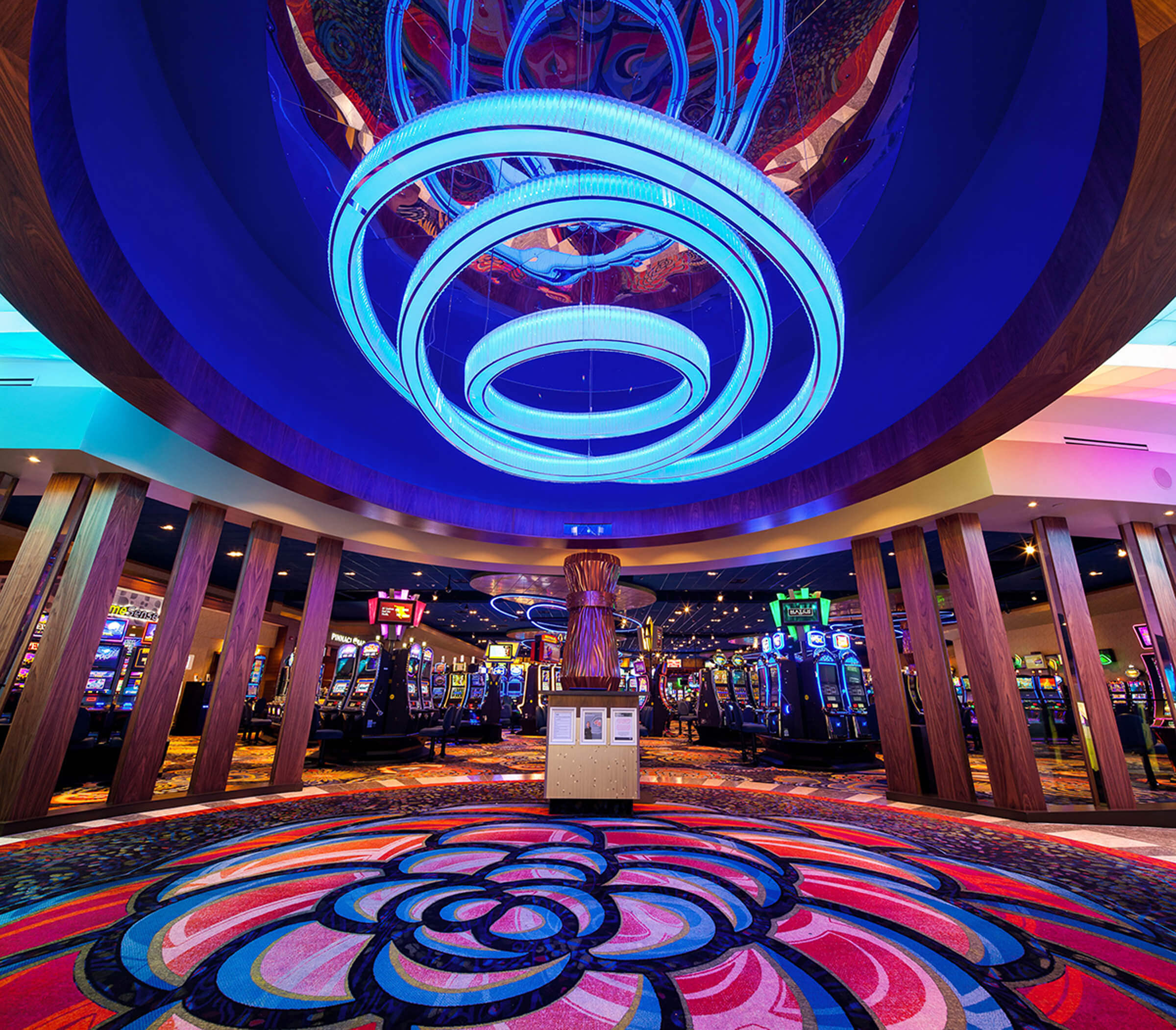 The Cascades Casino in Kamloops features a custom 3-piece VISO Ring canopy that hangs overhead the casino lobby.